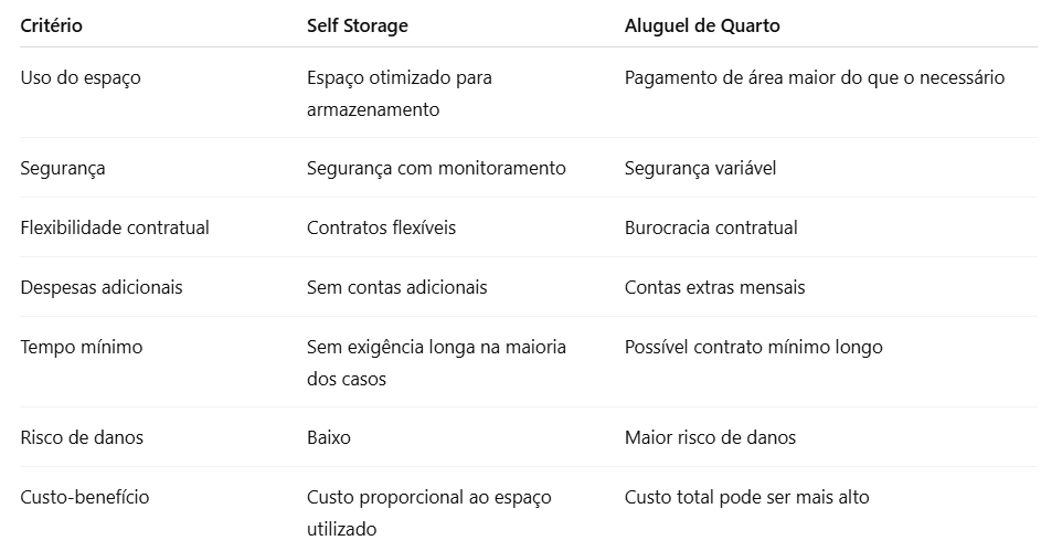 Comparação direta: self storage vs aluguel de quarto
